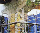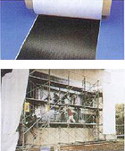 鉄の10倍の高強度、鉄の1/4の軽量、高弾性、高耐久性、非磁性などの特性を持った炭素繊維シートやアラミド繊維シートを貼り付け、構造物の重量増を防ぎながら、柱のせん断補強など耐震性能を高めます。