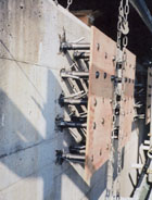 落橋防止・橋脚巻立て・基礎補強アンカーなどの工事において、鉄筋探査をはじめ、ハンマードリル削孔・削岩機削孔・ダイヤモンドコア穿孔など各種穴あけ工事から、樹脂カプセル・樹脂注入・無収縮モルタル注入によるアンカーボルト定着まで、一貫した施工を行います。